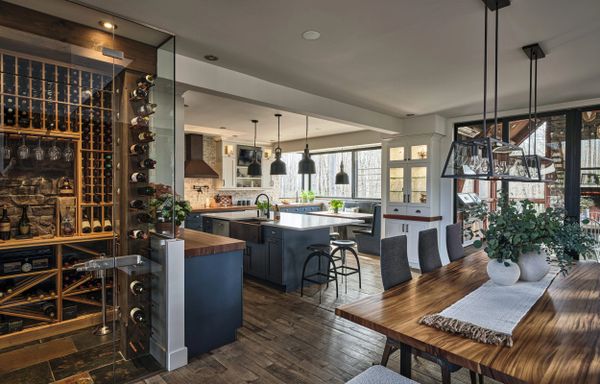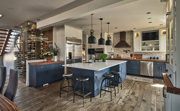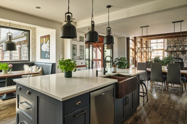 Aucun détail n'est laissé au hasard : le comptoir en bois d’érable de 30 pouces de profondeur offre un espace de travail généreux, complété par deux lave-vaisselles qui promettent une gestion facile après les repas. Les deux lavabos, tout comme la hotte, ne sont pas de simples éléments fonctionnels mais des œuvres d'art en cuivre martelé à la main, témoignant de l'attention portée à l'artisanat et à l'unicité dans cette cuisine où l'art de vivre est célébré au quotidien.