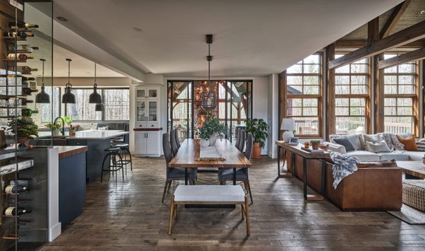 La véranda est un espace spectaculaire qui étire la salle à manger vers l’extérieur croisant une immense porte fenêtre. Construite en en bois de qualité, sa vaste structure de poutres en pin apparentes, lui confère un caractère chaleureux et rustique. Équipée d’éléments de chauffage efficace, cette pièce trois saisons offre une utilisation confortable presque tout au long de l'année, permettant de profiter de la nature environnante en toute saison.