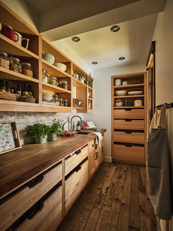 Cette pièce de style européen, adjacente à la cuisine, est une sorte d'antichambre culinaire qui allie fonctionnalité et esthétisme. Avec ses éléments en bois chaleureux et ses rangements ouverts, elle offre un espace de préparation supplémentaire et de stockage astucieux, parfait pour garder les essentiels à portée de main tout en maintenant le désordre loin des yeux dans la cuisine principale. C’est un atout précieux pour ceux qui aiment cuisiner ou qui souhaitent simplement un espace organisé pour profiter pleinement de la cuisine au quotidien.
