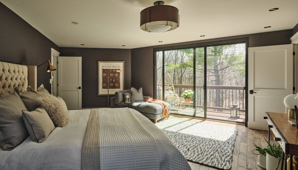 Cette chambre à coucher des maîtres est un véritable havre de paix, combinant élégance et fonctionnalité moderne. Elle est équipée d'haut-parleur intégrés, d'une télévision, et d'un mur insonorisé pour un confort acoustique optimal. L'atout majeur de cette pièce est la grande porte patio qui s'ouvre sur un vaste balcon, offrant une vue imprenable sur la forêt à l'arrière de la maison, assurant une connexion exceptionnelle avec la nature. La présence d'une toile motorisée encastrée permet de contrôler la lumière et de préserver l'intimité, tout en ajoutant une touche de luxe et de modernité à l'espace.