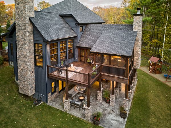 La demeure se déploie sur deux étages, avec quatre chambres à coucher, un espace loft, un bureau, trois salles de bain complètes et une salle d'eau. L'intérieur est un véritable chef-d'œuvre, offrant une cuisine équipée avec des appareils haut de gamme et un cellier de type walk-in pouvant accueillir plus de 350 bouteilles. Le sous-sol de type walk-out est doté de plafonds de 10 pieds. La demeure bénéficie d'un garage triple avec plancher radiant. La structure en poutre de bois, la grande fenestration, et les finitions extérieures en pierre et bois Maibec, ajoutent une touche d'élégance naturelle et de robustesse.