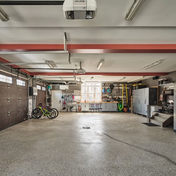Ce garage impressionnant de plus de 1300 pieds carrés se distingue par ses plafonds de 10 pieds, sans poteau. Trois portes de garage automatisées facilitent l’accès et l’entreposage de plusieurs véhicules.