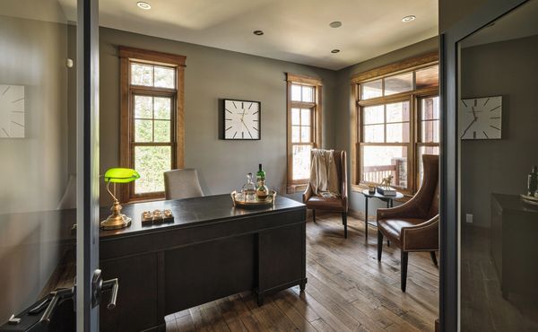 Situé juste à côté de l'entrée principale, cet espace généreusement éclairé par de grandes fenêtres est parfaitement adapté à un bureau à domicile. La vue sur le balcon et la forêt environnante apporte une ambiance sereine et lumineuse, favorable à la concentration et au bien-être. La pièce est également munie de deux haut-parleurs encastrés et d'un téléviseur, offrant une expérience multimédia complète pour le travail ou la détente.